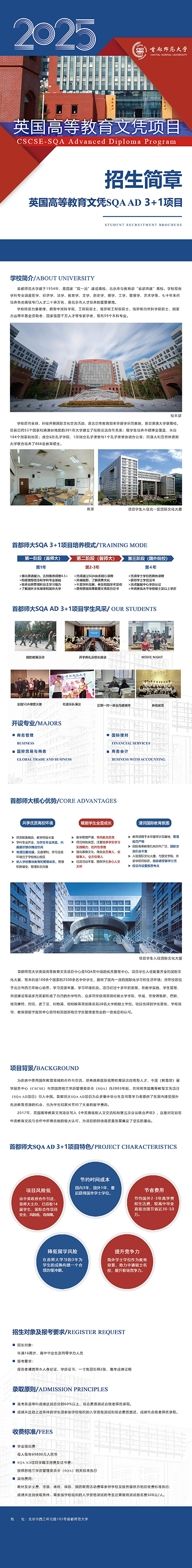 首都师范大学SQA3+1国际本科